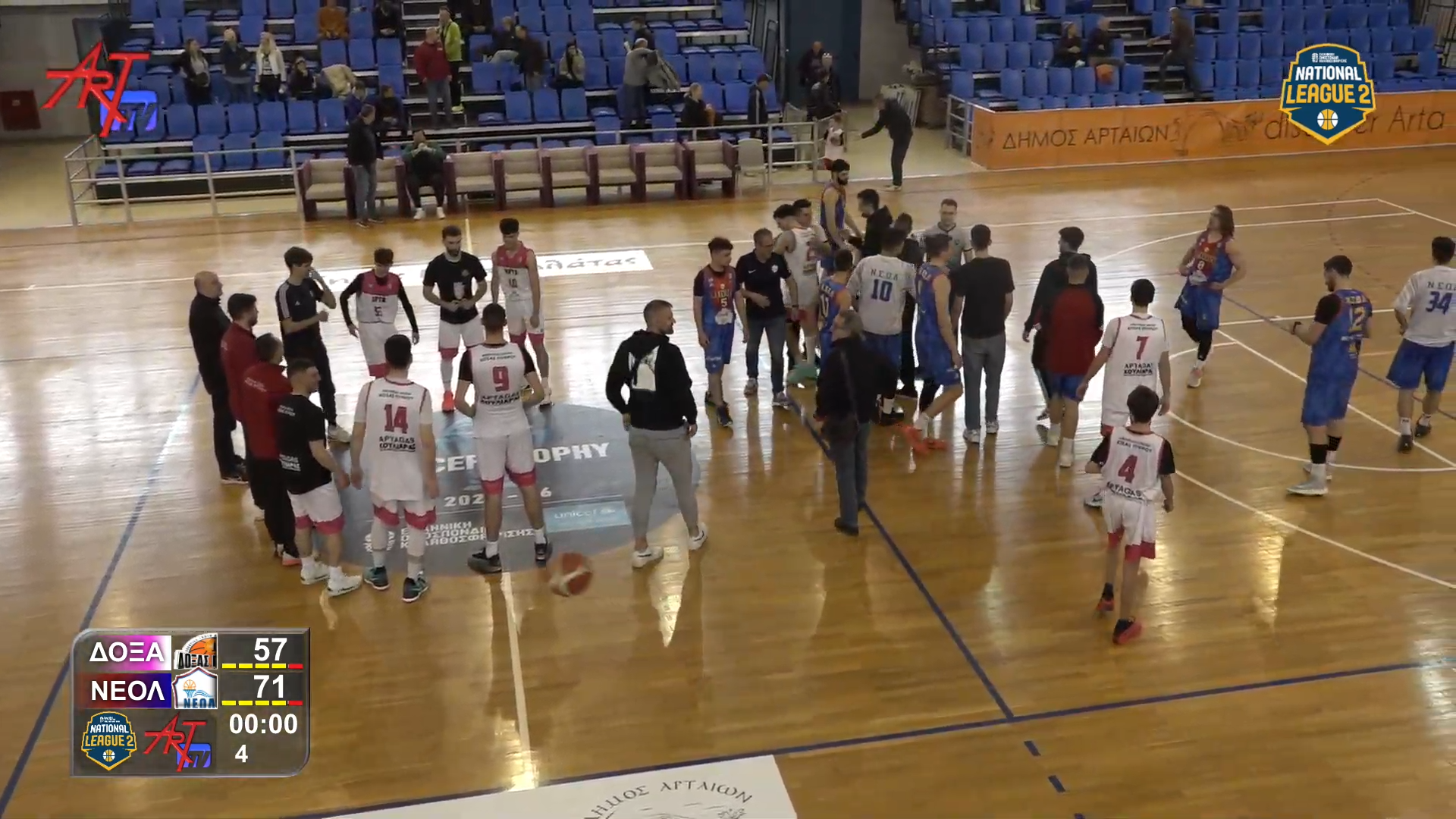 Αποφασιστικό βήμα για την πρόκριση στην επόμενη φάση των playoffs της National League 2 πραγματοποίησε ο ΝΕΟ Ληξουρίου, επικρατώντας της Α.Ε. Δόξας – Πύρρου Άρτας με 71-57. Με αυτή τη νίκη, η ομάδα της Κεφαλονιάς διπλασίασε τις επιτυχίες της στη σειρά (2-0) και απέχει πλέον μόλις μία νίκη από την πρόκριση, η οποία κρίνεται στις τρεις νίκες.