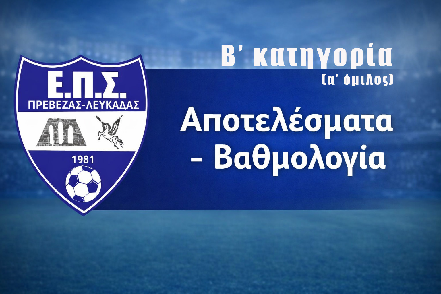 Με έντονο ενδιαφέρον και αρκετά γκολ ολοκληρώθηκε η 17η αγωνιστική του πρωταθλήματος της Β’ κατηγορίας της ΕΠΣ Πρέβεζας–Λευκάδας. Οι ομάδες έδωσαν δυνατές μάχες στους αγωνιστικούς χώρους, με σημαντικές νίκες, ανατροπές αλλά και εντυπωσιακά σκορ που επηρεάζουν τη διαμόρφωση της βαθμολογίας. Δείτε παρακάτω αναλυτικά τα αποτελέσματα της αγωνιστικής καθώς και τη βαθμολογία όπως διαμορφώθηκε μετά το τέλος των αγώνων.