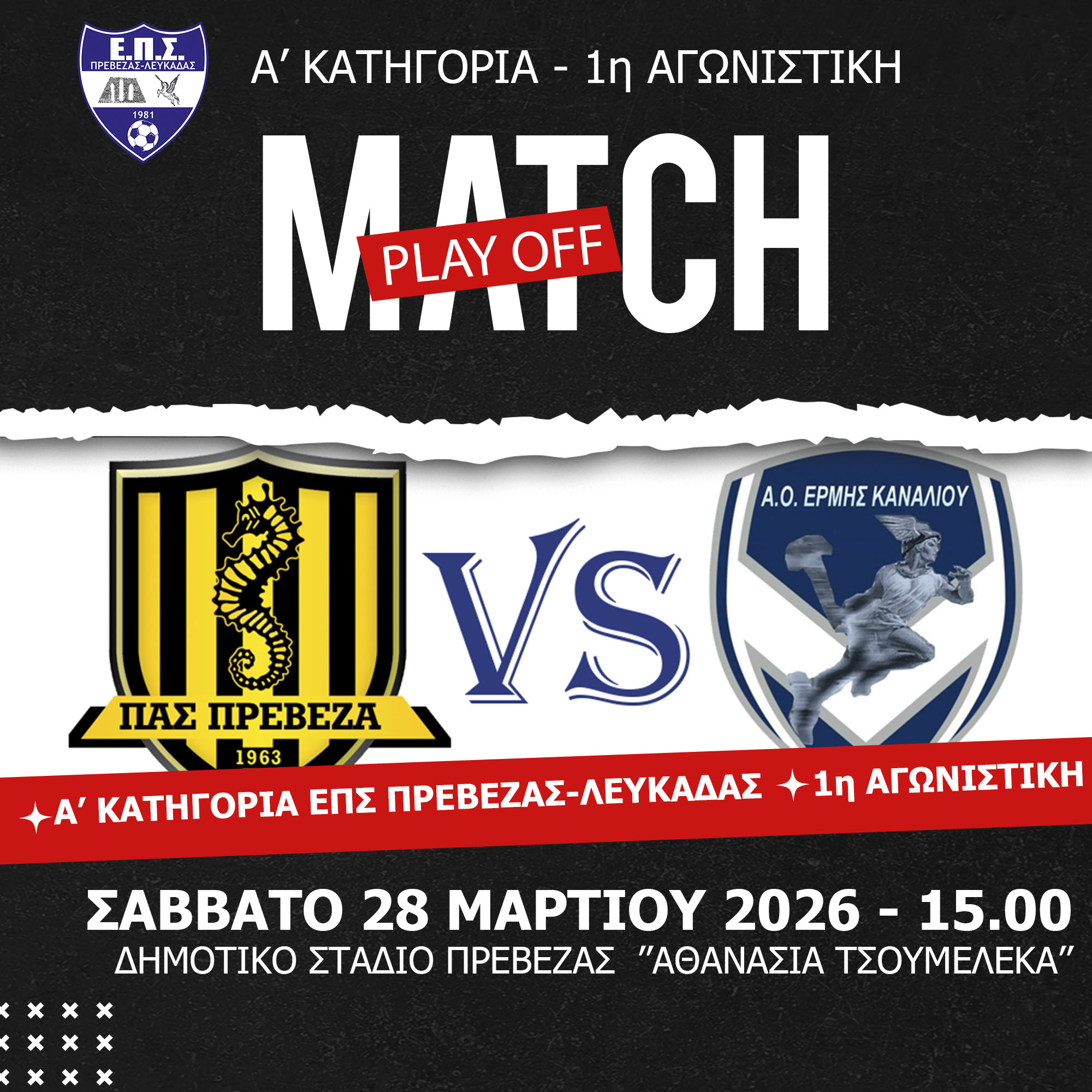 Πρώτο εμπόδιο σε αυτή τη διαδρομή είναι ο Ερμής Καναλίου, σε μια αναμέτρηση που αναμένεται με τεράστιο ενδιαφέρον. Ο αγώνας θα διεξαχθεί το Σάββατο 28 Μαρτίου στις 15:00 στο Δημοτικό Στάδιο Πρέβεζας «Αθανασία Τσουμελέκα», εκεί όπου ο ΠΑΣ θέλει να κάνει το πρώτο αποφασιστικό βήμα μπροστά στο κοινό του.