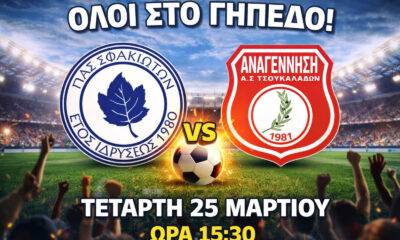 / 1 εβδομάδα agoΟρίστηκε για τις 25 Μαρτίου το εξ αναβολής Σφακιώτες – Αναγέννηση Τσουκαλάδων