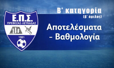 / 2 εβδομάδες agoΒ’ ΕΠΣ Πρέβεζας–Λευκάδας (β’ όμιλος): Τα αποτελέσματα και η βαθμολογία μετά τη 17η αγωνιστική