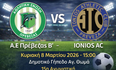 / 4 εβδομάδες agoΗ Α.Ε Πρέβεζας υποδέχεται τον IONIOS AC στην αναμέτρηση της αγωνιστικής