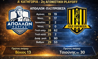 / 3 ημέρες agoHEAD TO HEAD – Απόλλων Πάργας vs ΠΑΣ Πρέβεζα