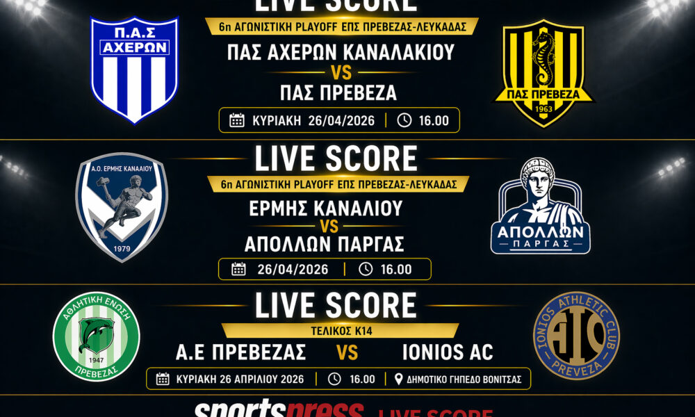 / 3 ημέρες agoΟρίστηκαν οι ημιτελικοί Κ-14 της ΕΠΣ Πρέβεζας-Λευκάδας – Το πρόγραμμα και οι ώρες των αγώνων